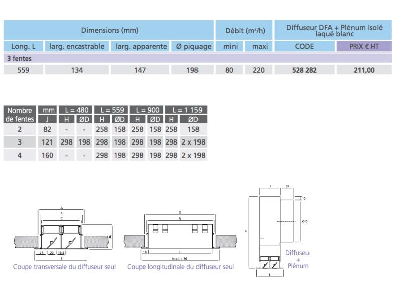 ATLANTIC DFA-3F 559B bouche de soufflage 3 fentes