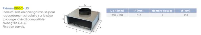 Plénum isolé à piquage latéral pour grilles BBGC-LIS